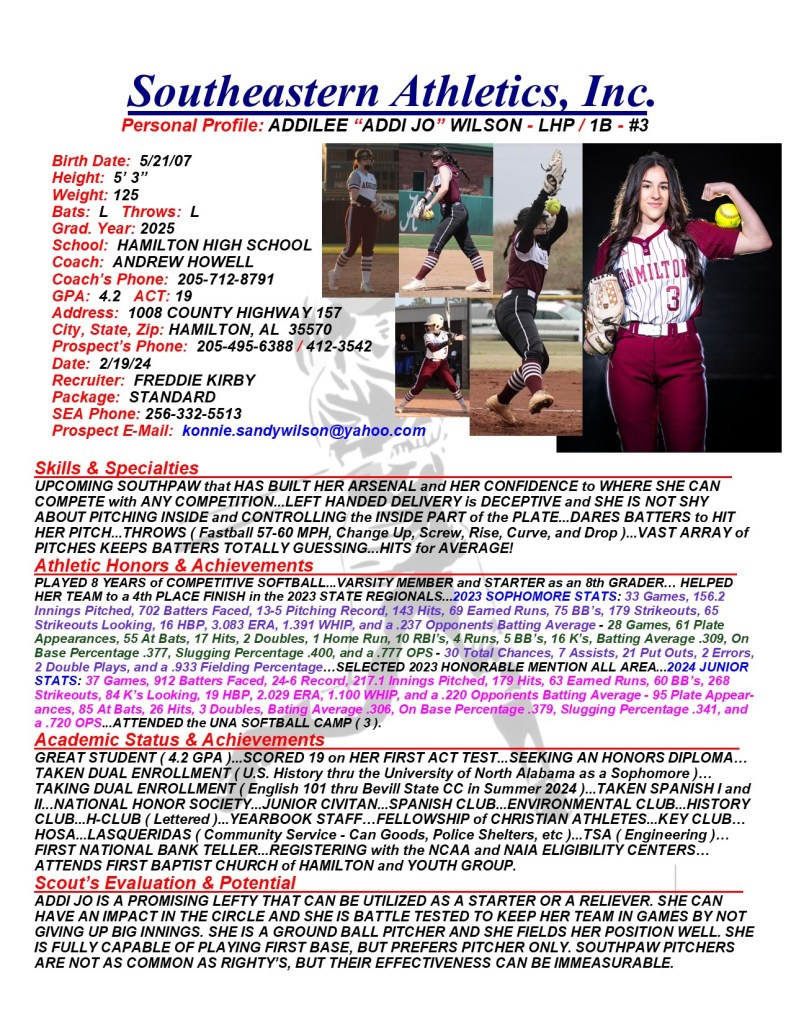 Addilee “Addi Jo” Wilson, 2025, LHP / 1B, Hamilton HS, AL