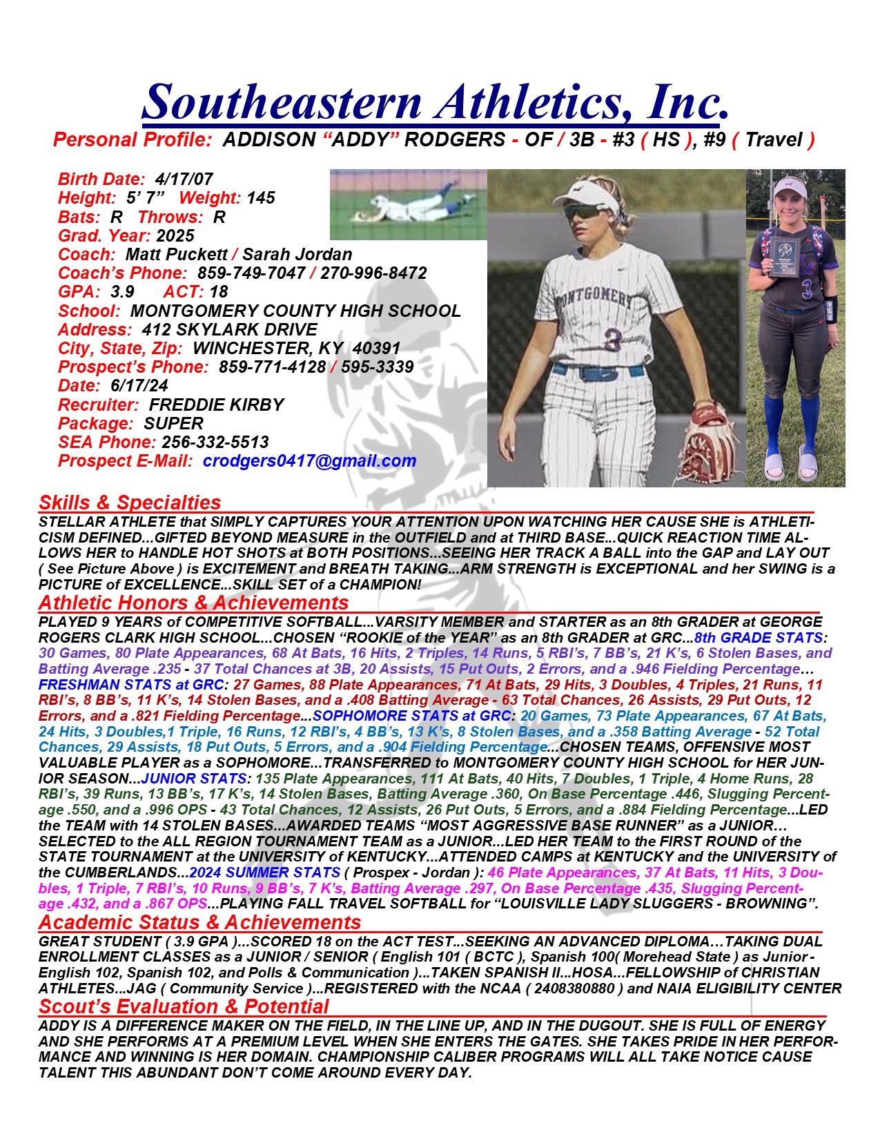 Addison “Addy” Rodgers, 2025, OF / 3B, Montgomery County HS, KY