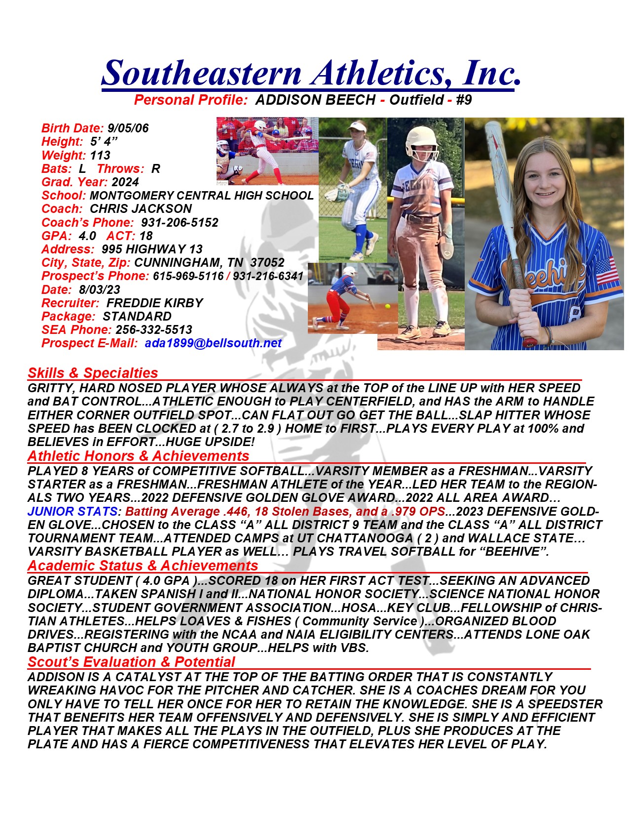 Addison Beech, 2024, Outfielder, Montgomery Central HS, TN