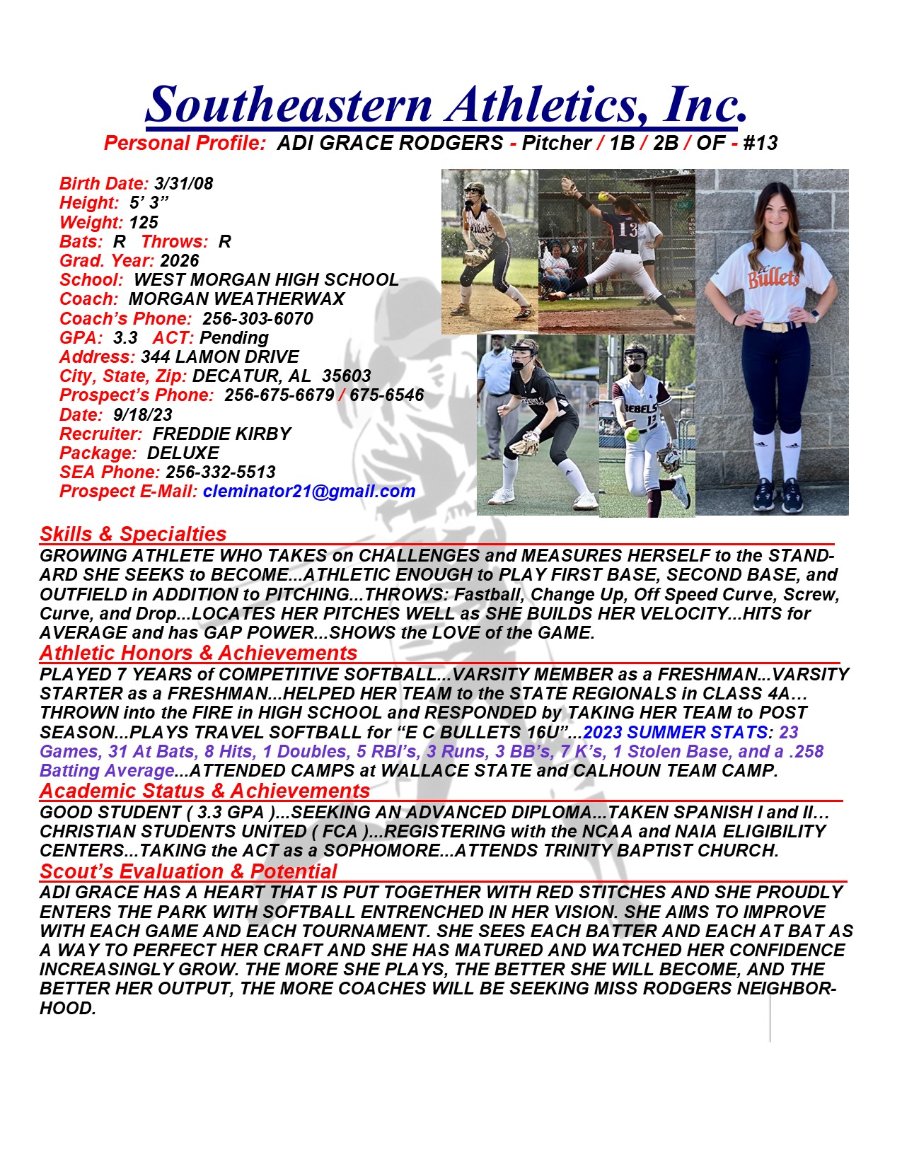 Adi Grace Rodgers, 2026, Pitcher / 1B / 2B / OF, West Morgan HS, AL