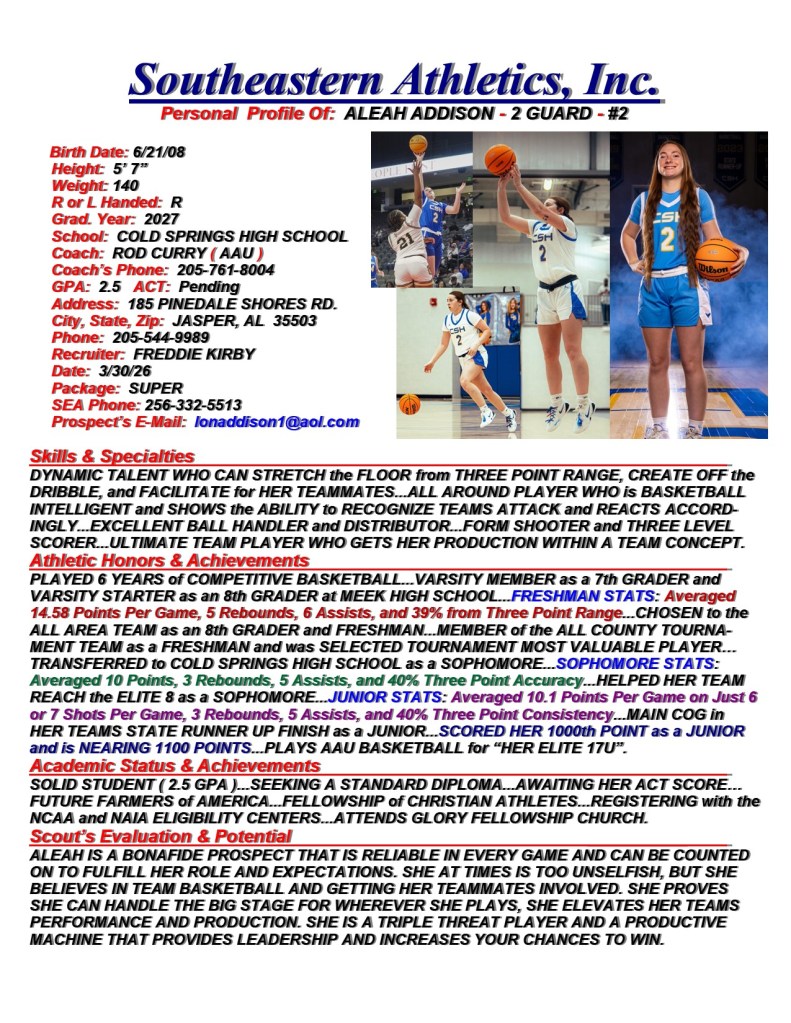 Aleah Addison, 2027, 2 Guard, Cold Springs HS, AL