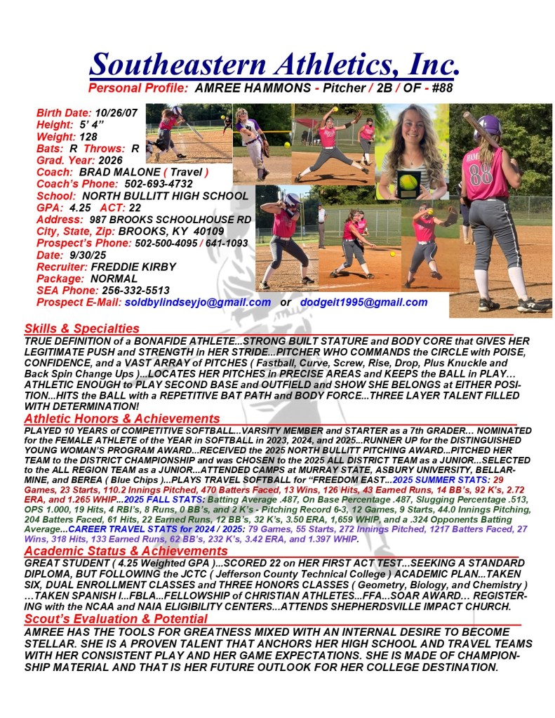 Amree Hammons, 2026, Pitcher / 2B / OF, North Bullitt HS, KY
