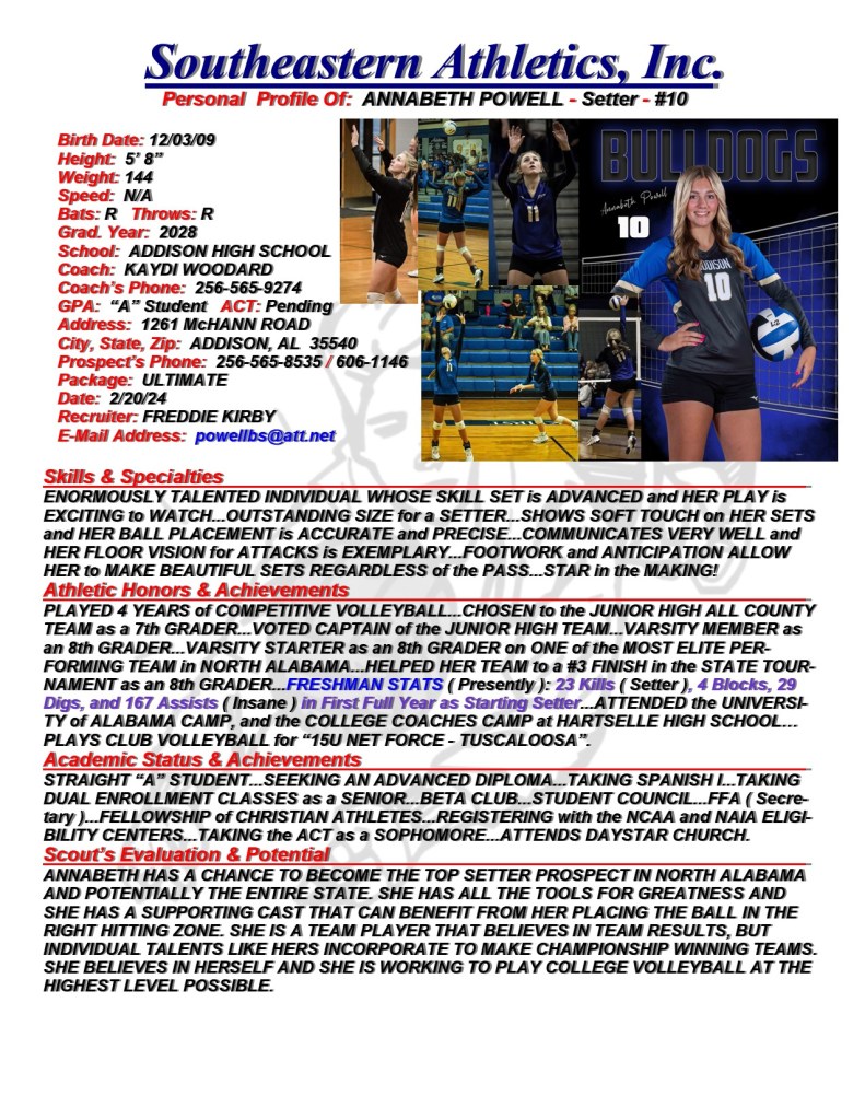 AnnaBeth Powell, 2028, Setter, Addison HS, AL