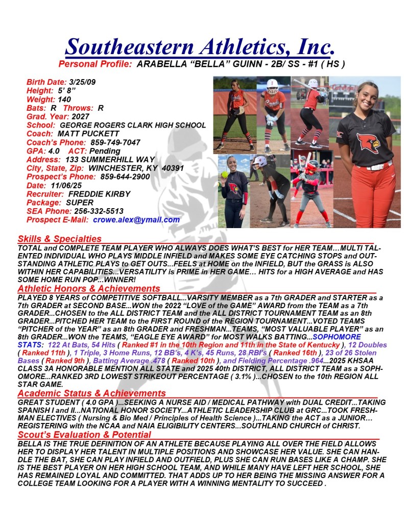 Arabella “Bella” Guinn, 2027, 2B / SS, George Rogers Clark HS, KY