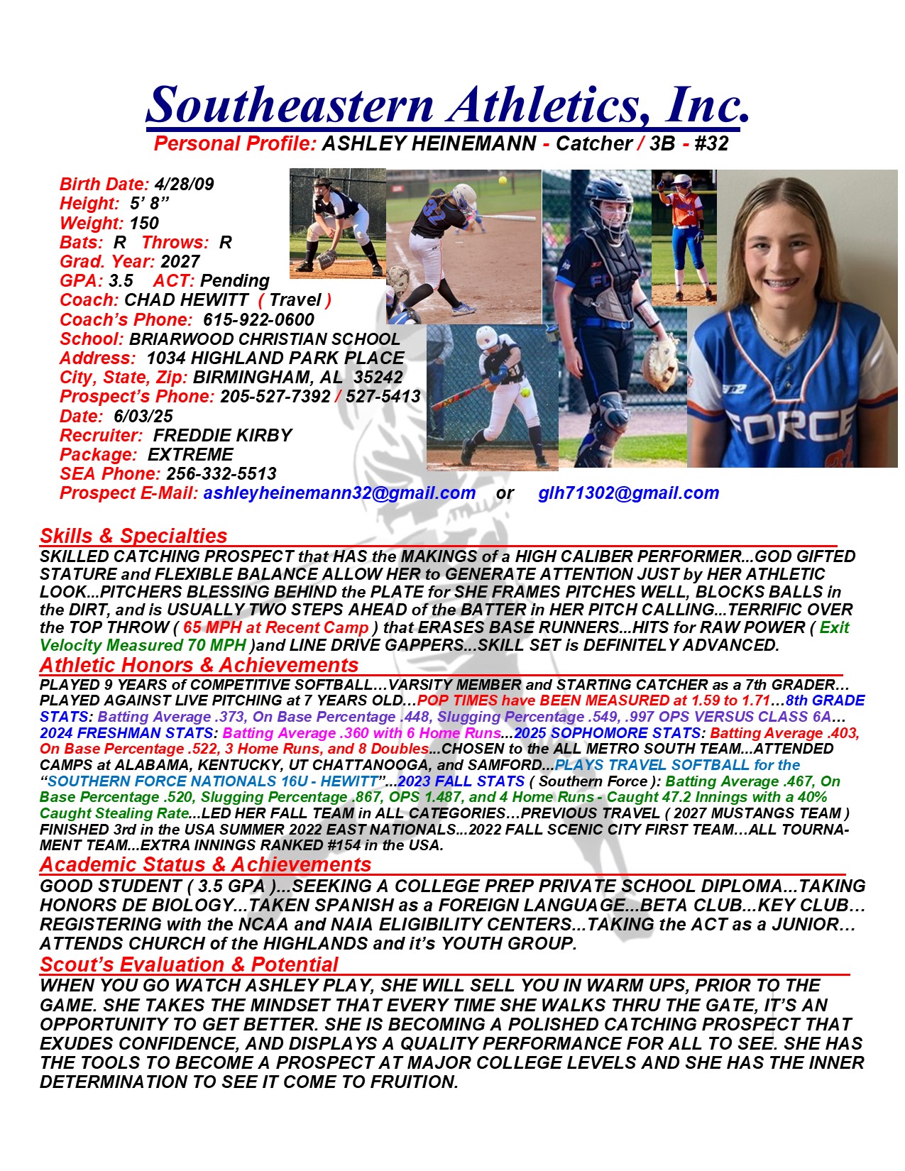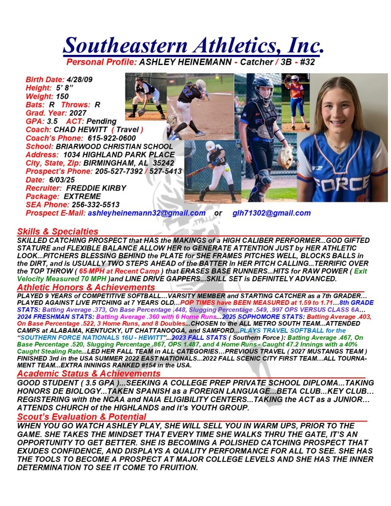 Ashley Heinemann, 2027, Catcher / 3B, Briarwood Christian School, AL