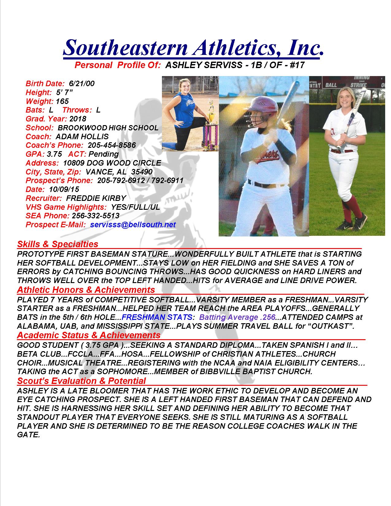Ashley Serviss, 2018, 1B / OF, Brookwood HS, AL