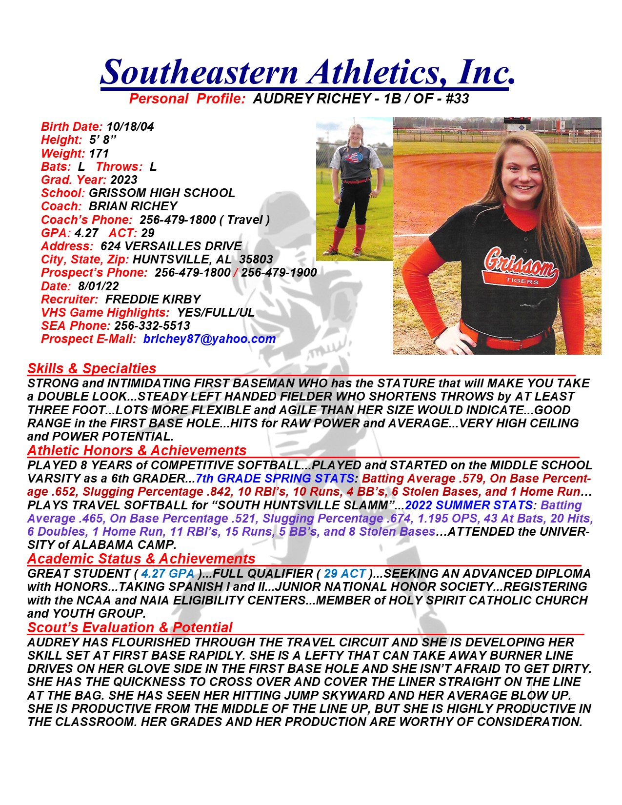 Audrey Richey, 2023, 1B / OF, Grissom HS, AL
