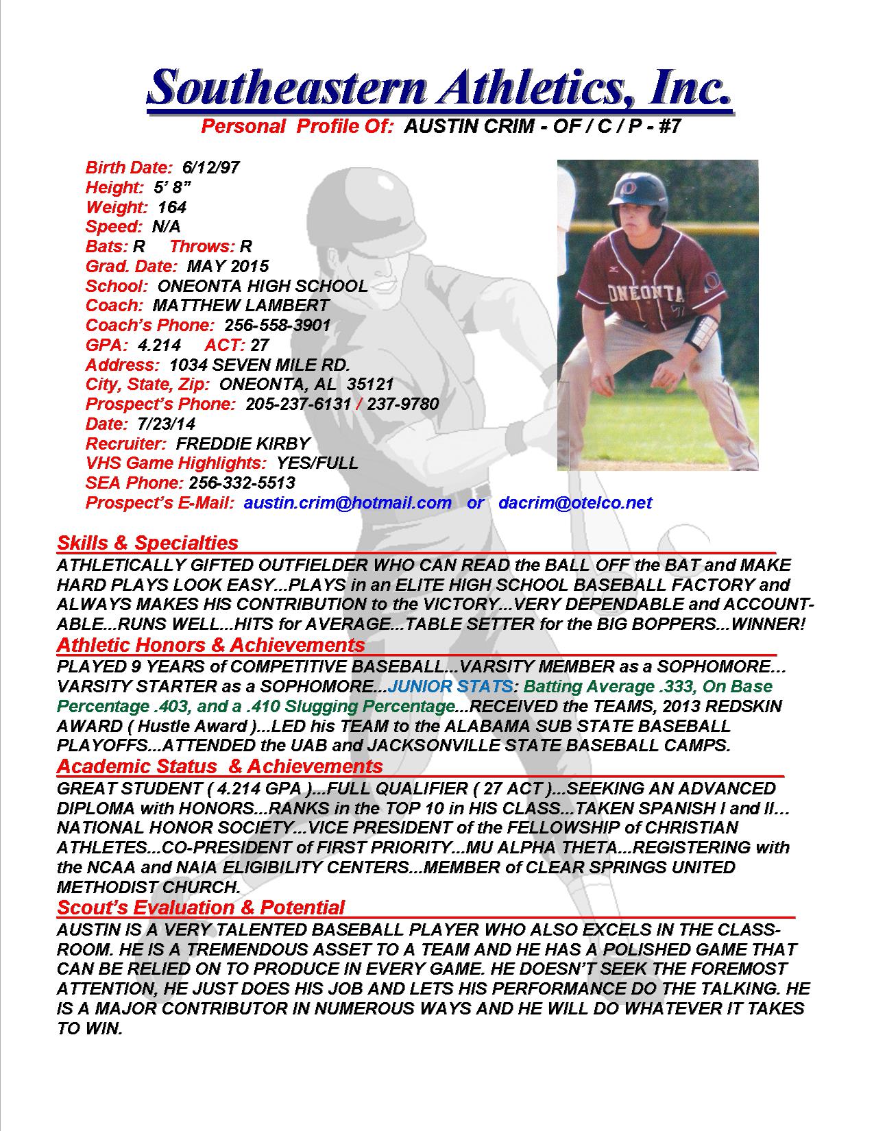 Austin Crim, 2015, OF/C/P, Oneonta HS, AL