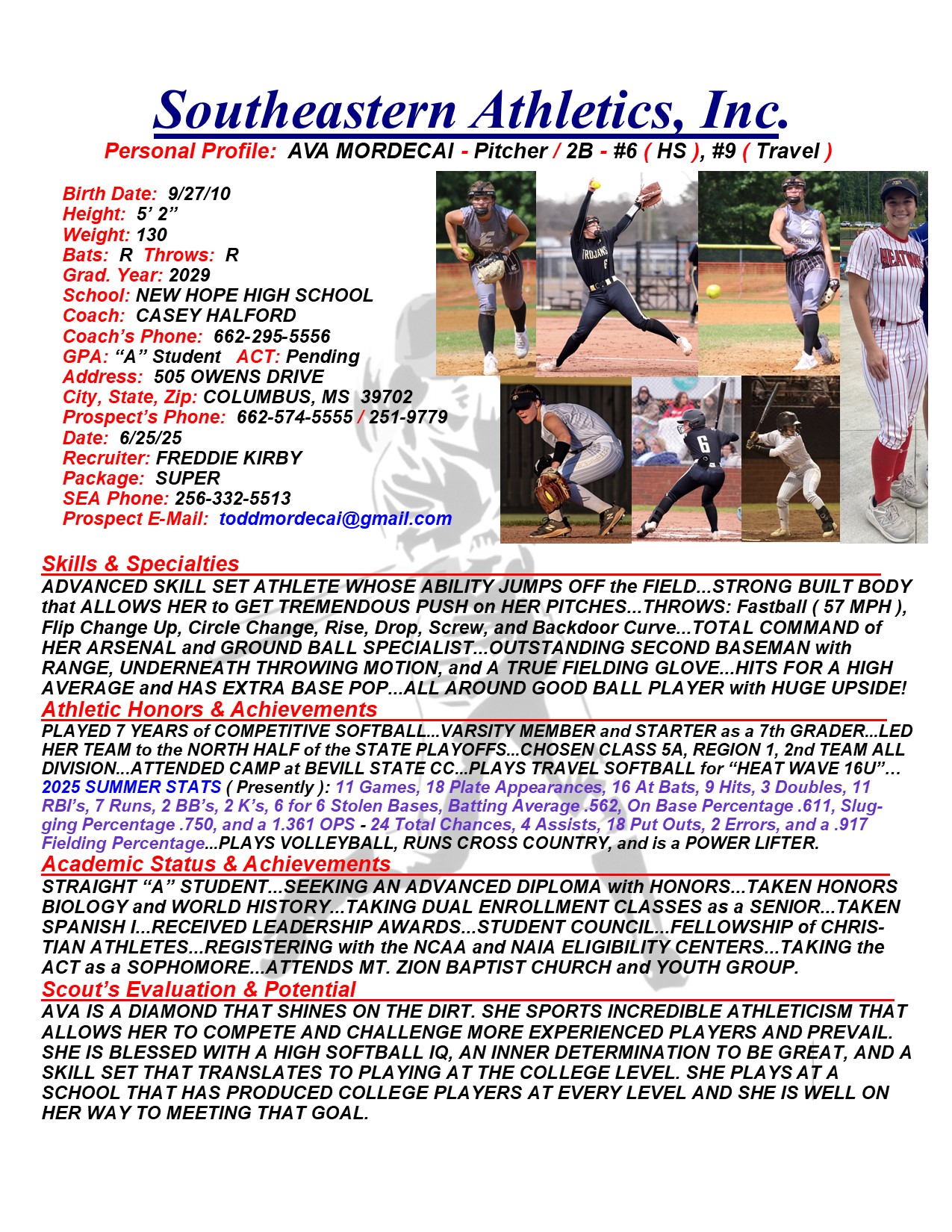 Ava Mordecai, 2029, Pitcher / 2B, New Hope HS, MS