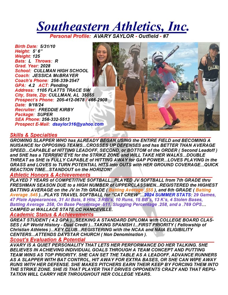 Avary Saylor, 2028, Outfield, Cullman HS, AL