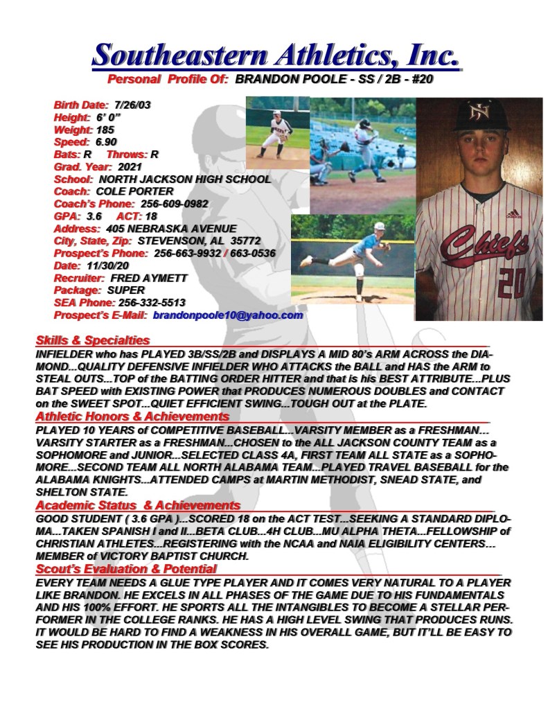 Brandon Poole, 2021, SS / 2B, North Jackson HS, AL
