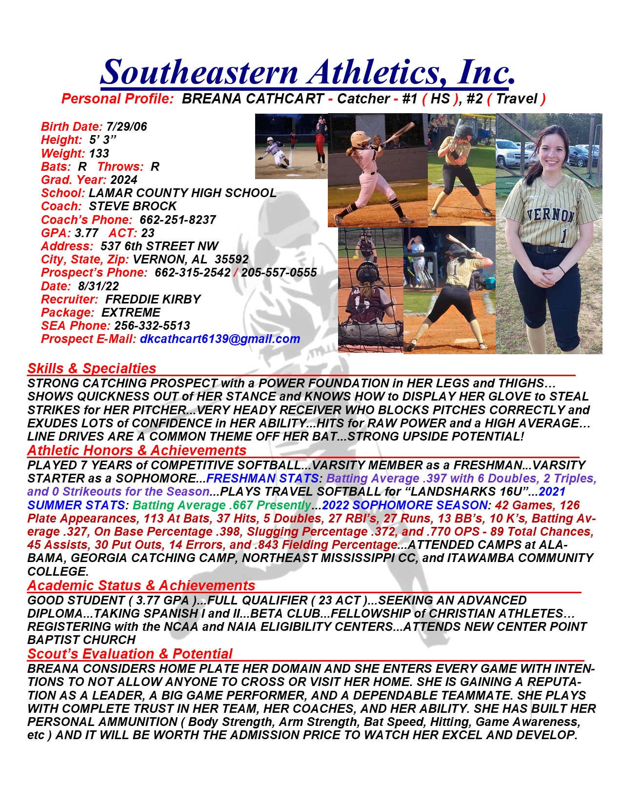 Breana Cathcart, 2024, Catcher / 3B, Lamar County HS, AL