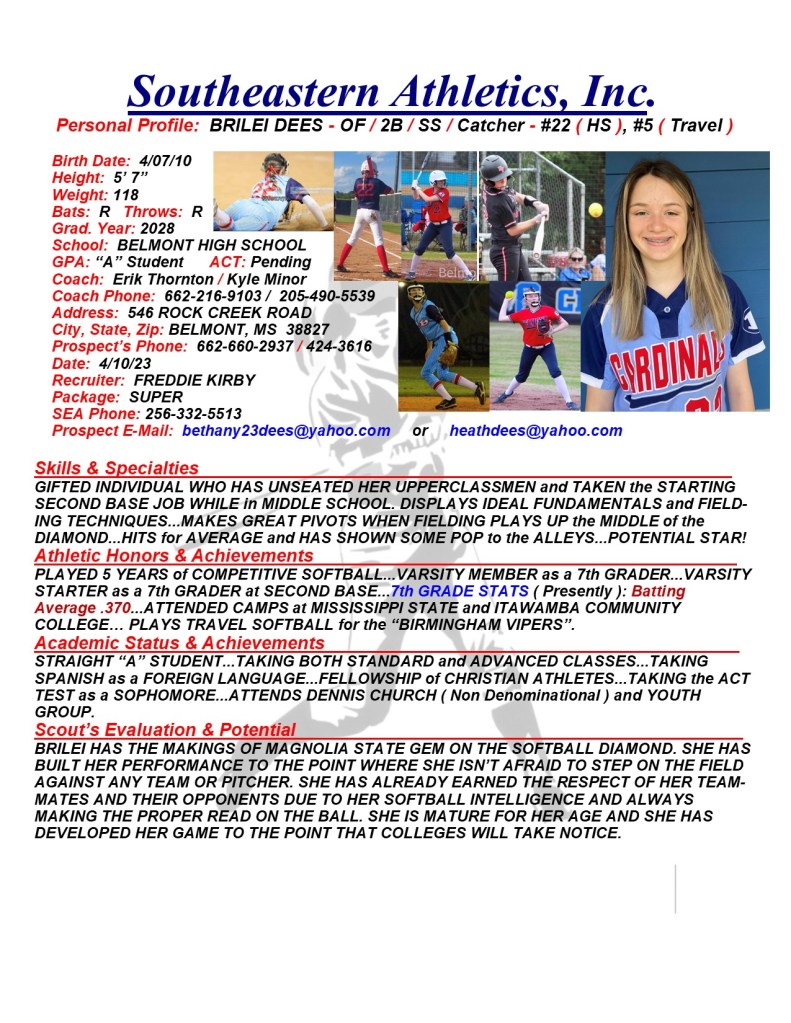 Brilei Dees, 2028, OF / 2B / SS / Catcher, Belmont HS, MS