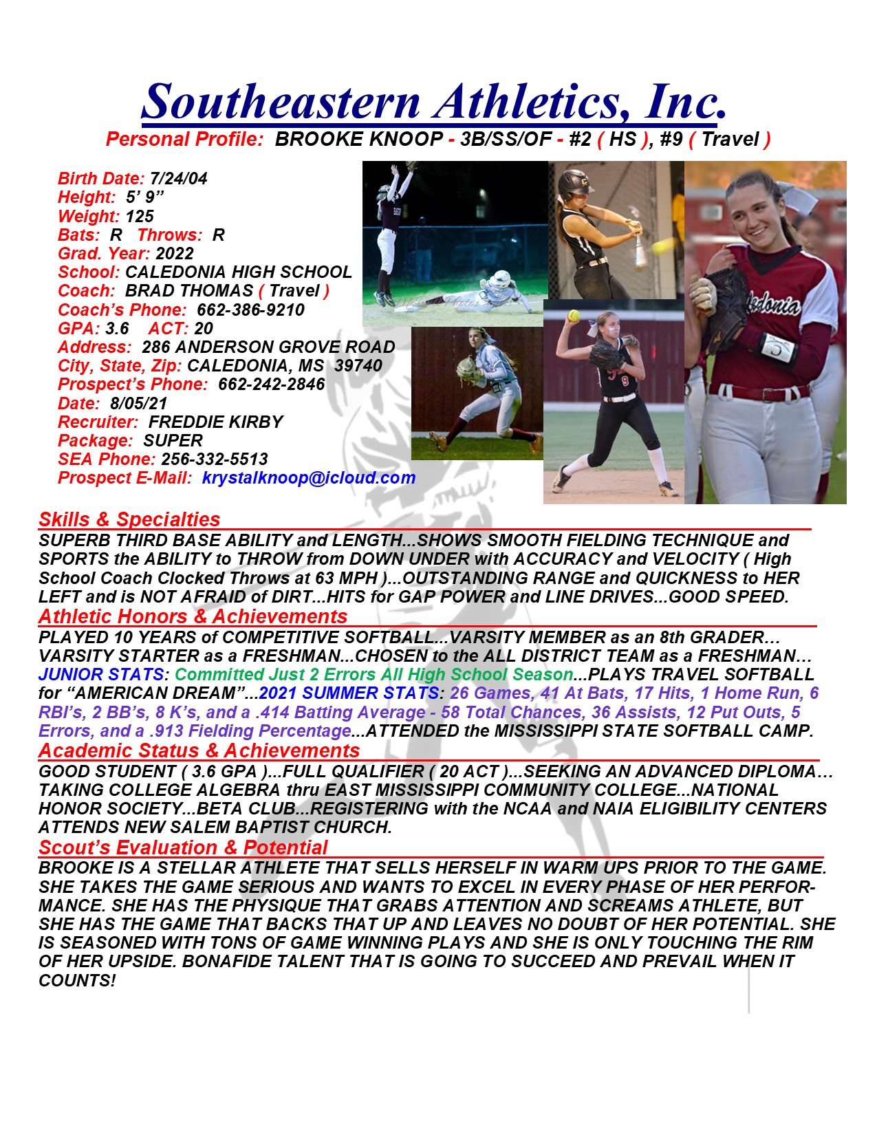 Brooke Knoop, 2022, 3B / SS / OF, Caledonia HS, MS