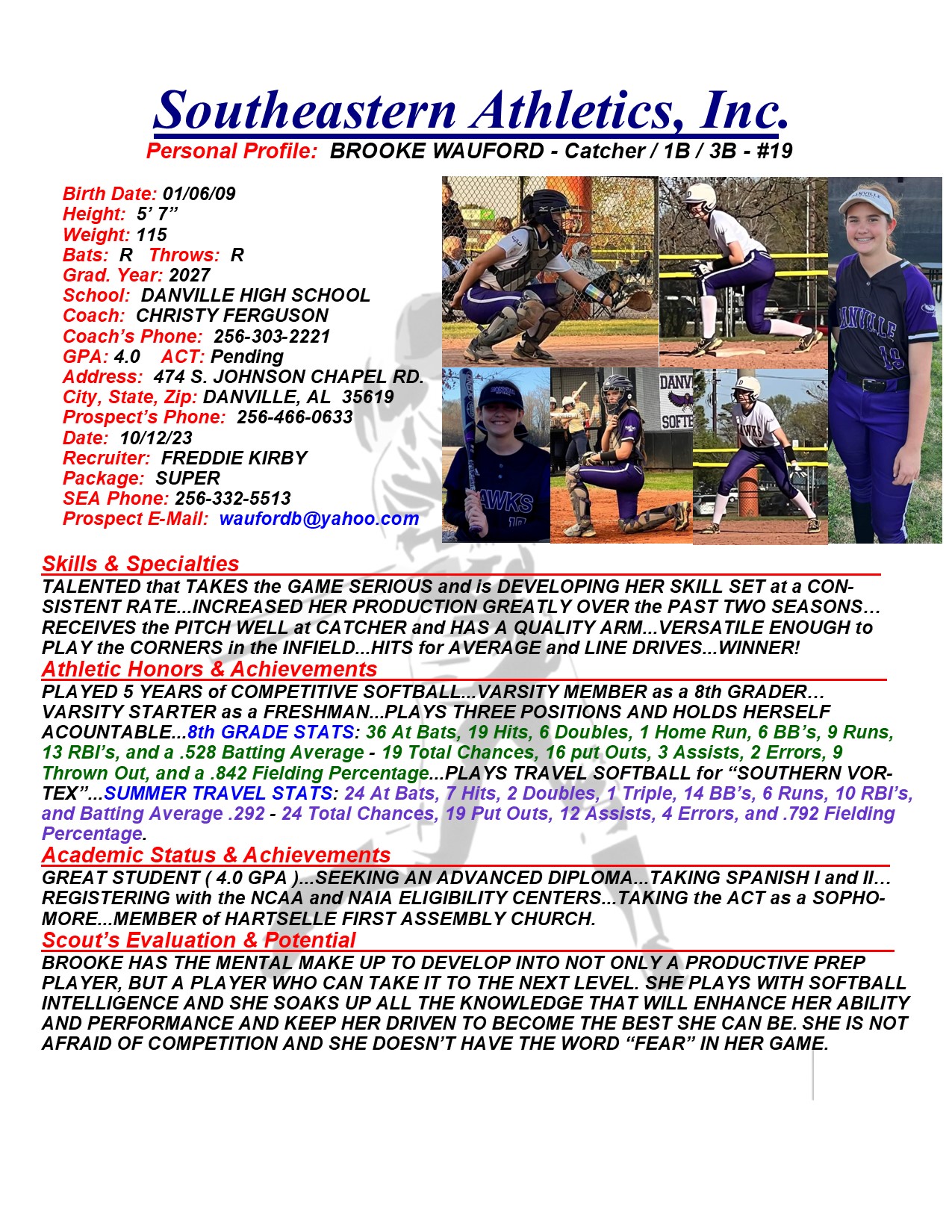 Brooke Wauford, 2027, Catcher / 1B / 3B, Danville HS, AL