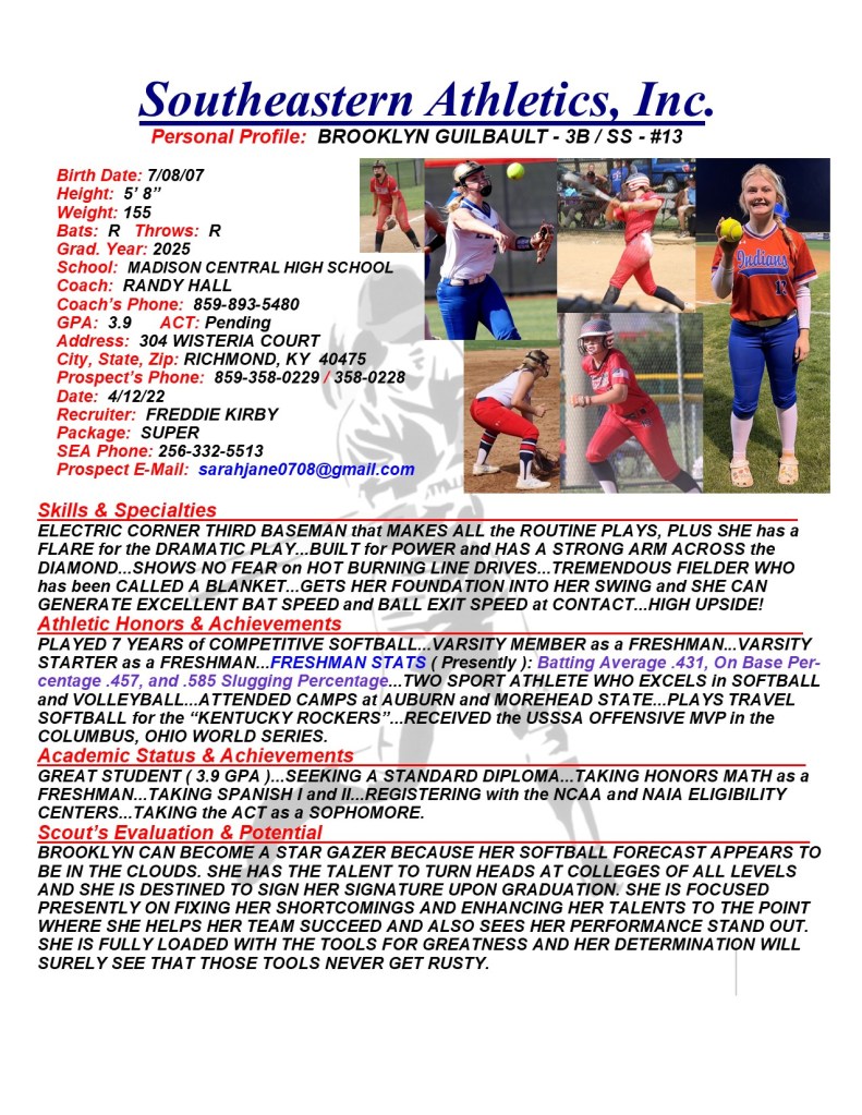 Brooklyn Guilbault, 2025, 3B / SS, Madison Central HS, KY