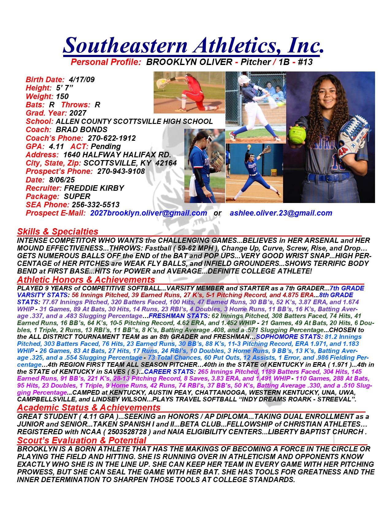 Brooklyn Oliver, 2027, Pitcher / 1B, Allen County Scottsville HS, KY