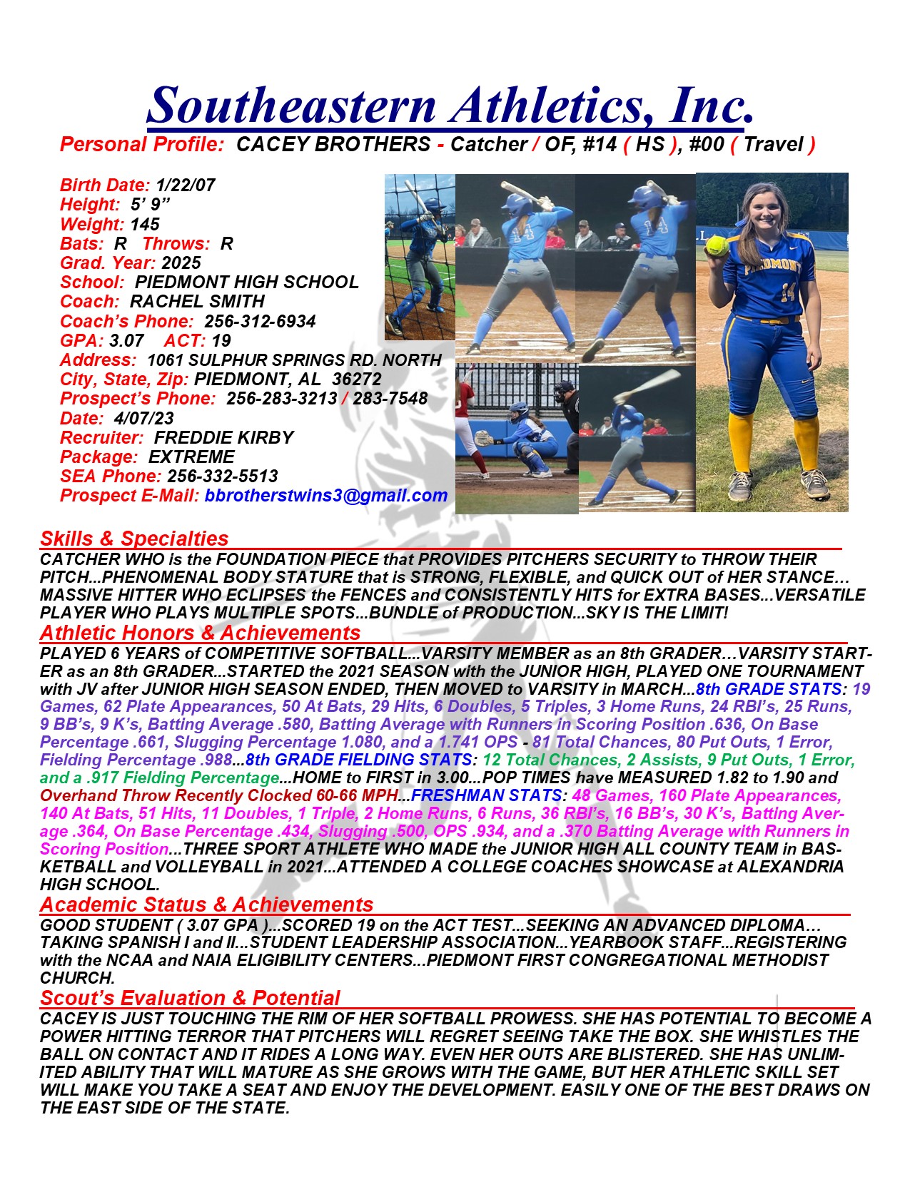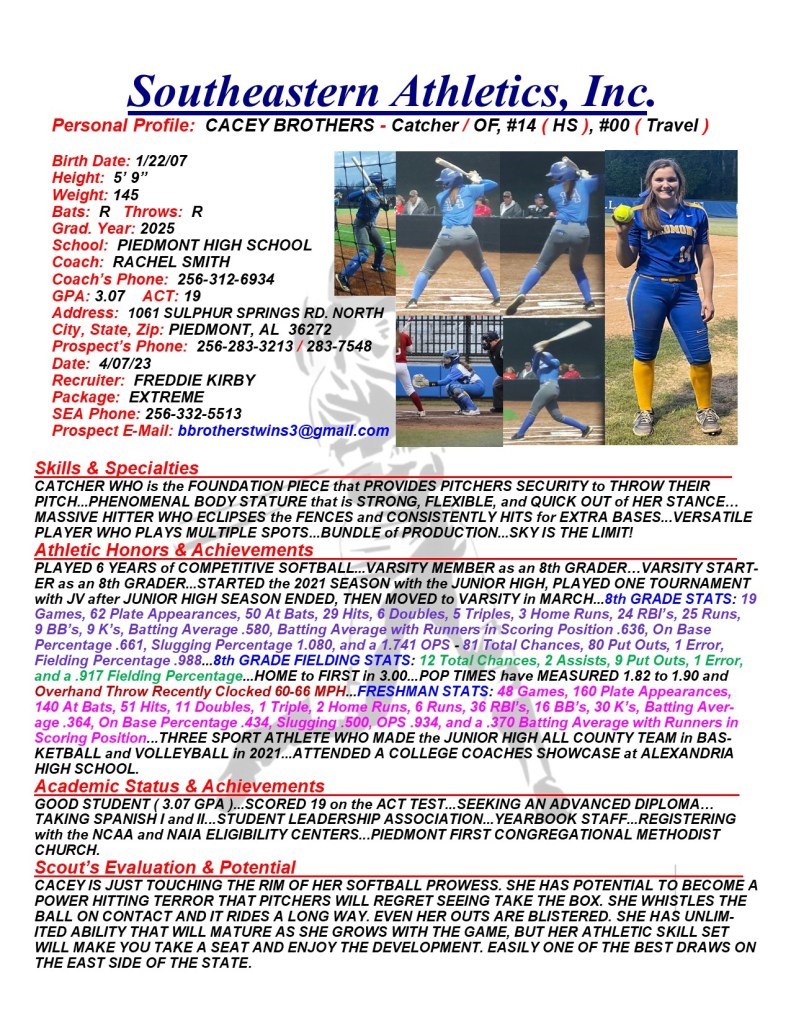 Cacey Brothers, 2025, Catcher / OF, Piedmont HS, AL