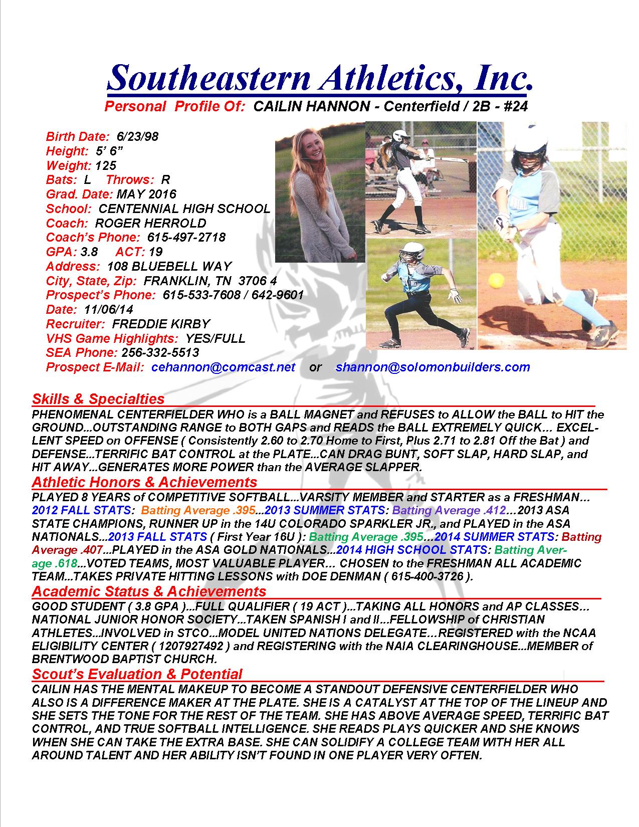 Cailin Hannon, OF, 2016, Centennial HS, TN