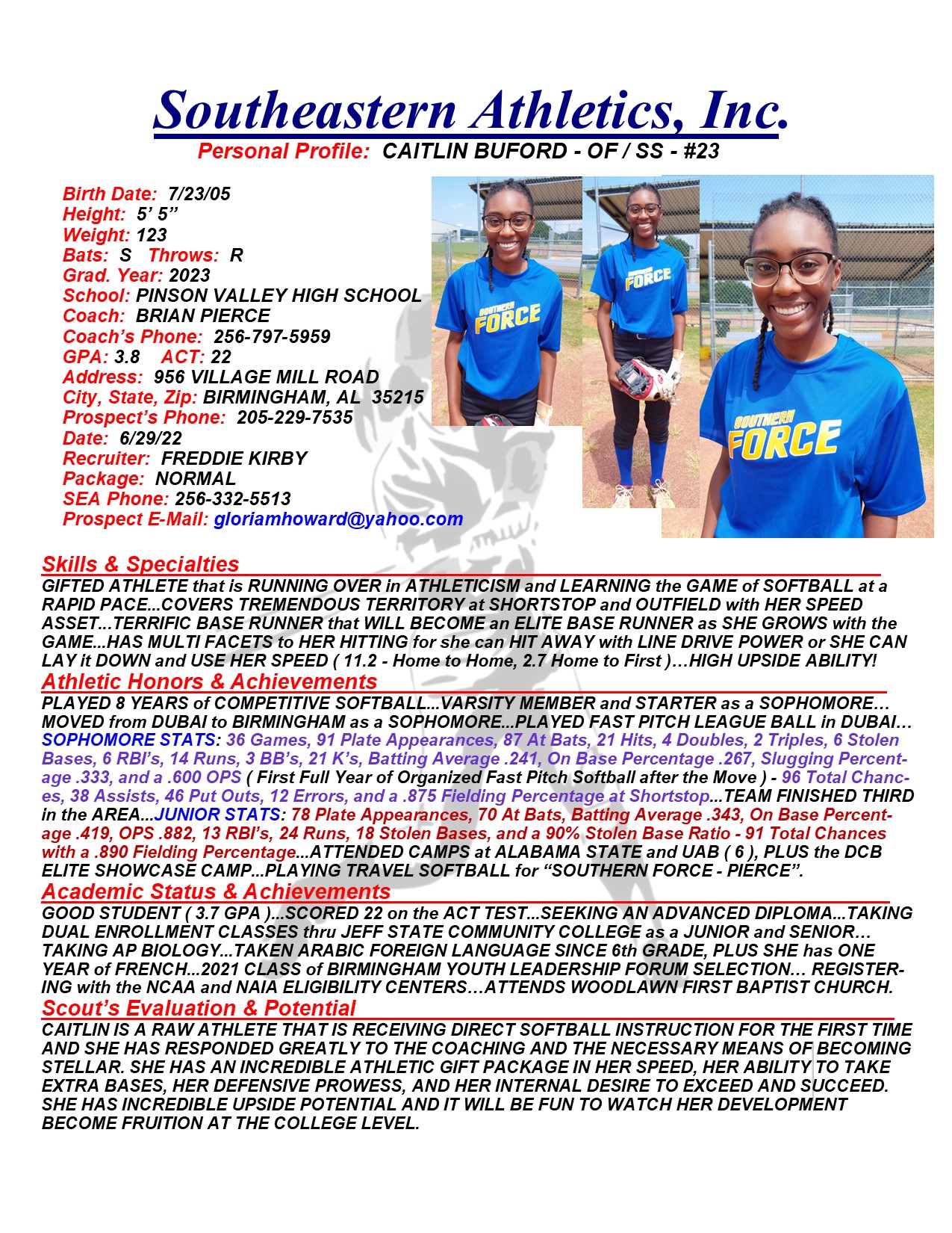 Caitlin Buford, 2023, OF / SS, Pinson Valley HS, AL