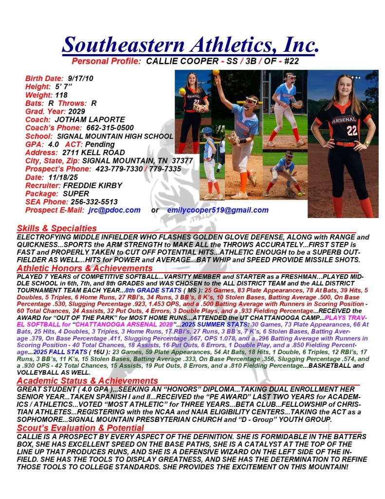 Callie Cooper, 2029, SS / 3B / OF, Signal Mountain HS, TN