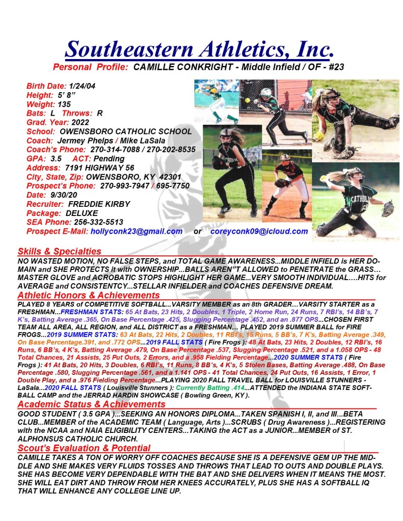 Camille Conkright, 2022, Middle Infield / OF, Owensboro Catholic School, KY