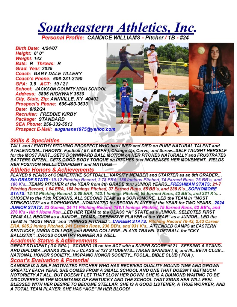 Candice Williams, 2025, Pitcher / 1B, Jackson County HS, KY