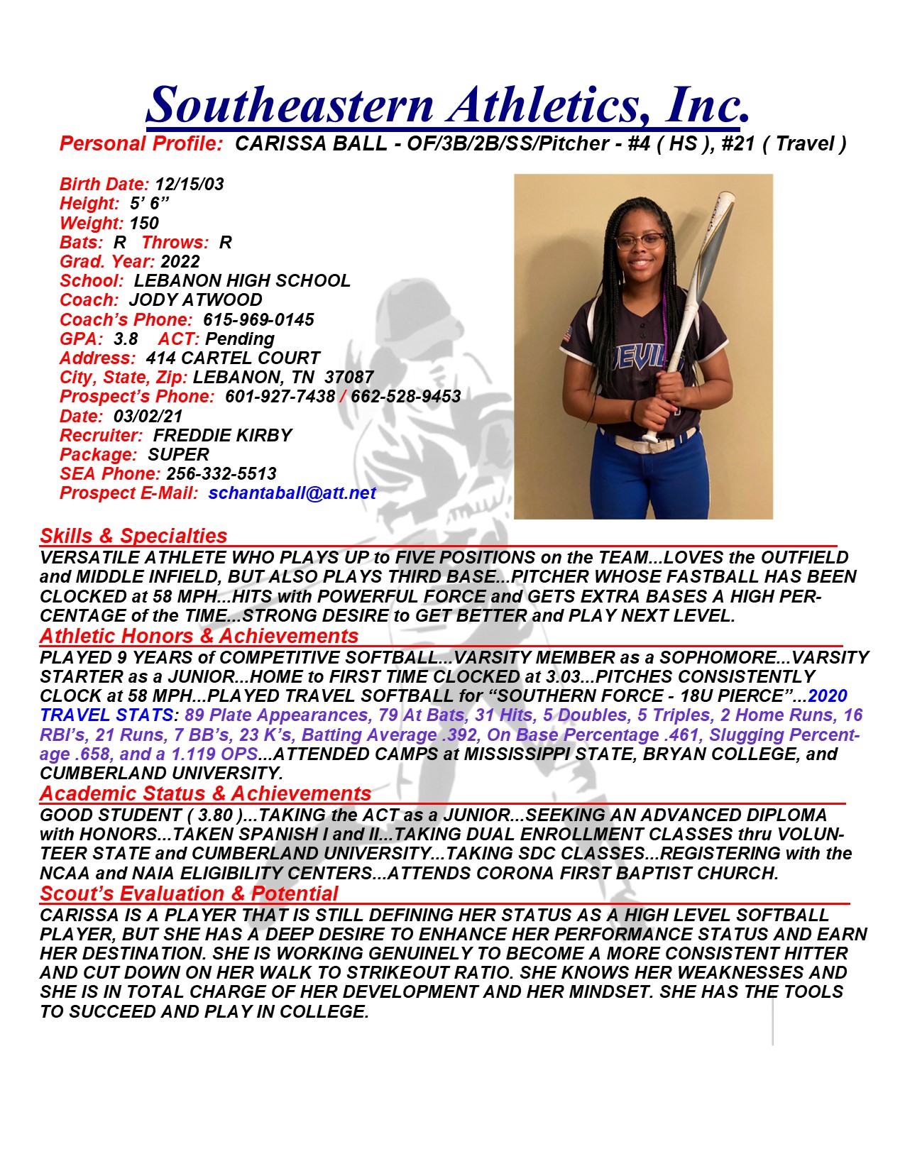 Carissa Ball, 2022, OF / 3B / 2B / SS / Pitcher, Lebanon HS, TN