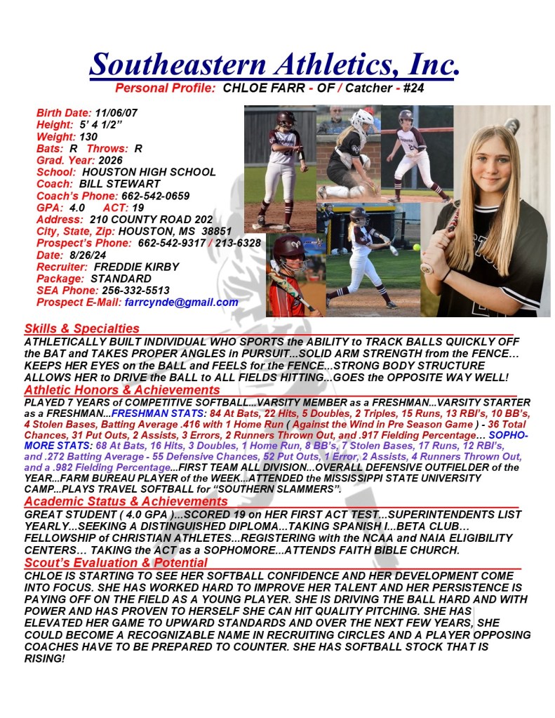 Chloe Farr, 2026, Outfield / Catcher, Houston HS, MS