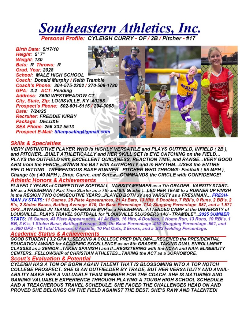 Cyleigh Curry, 2028, OF / 2B / Pitcher, Male High School, KY