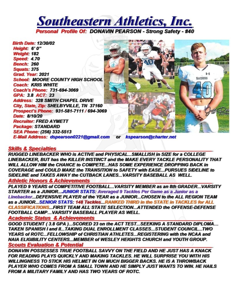 Donavin Pearson, 2021, Strong Safety, Moore County HS, TN
