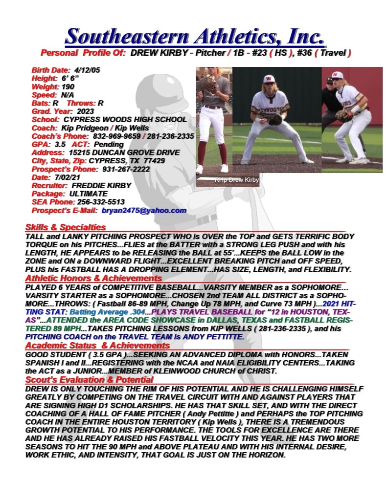 Drew Kirby, 2023, Pitcher / 1B, Cypress Woods HS, TX