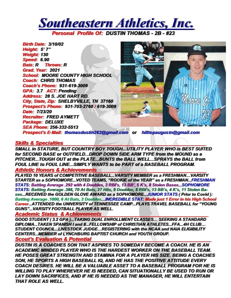 Dustin Thomas, 2021, 2B, Moore County HS, TN