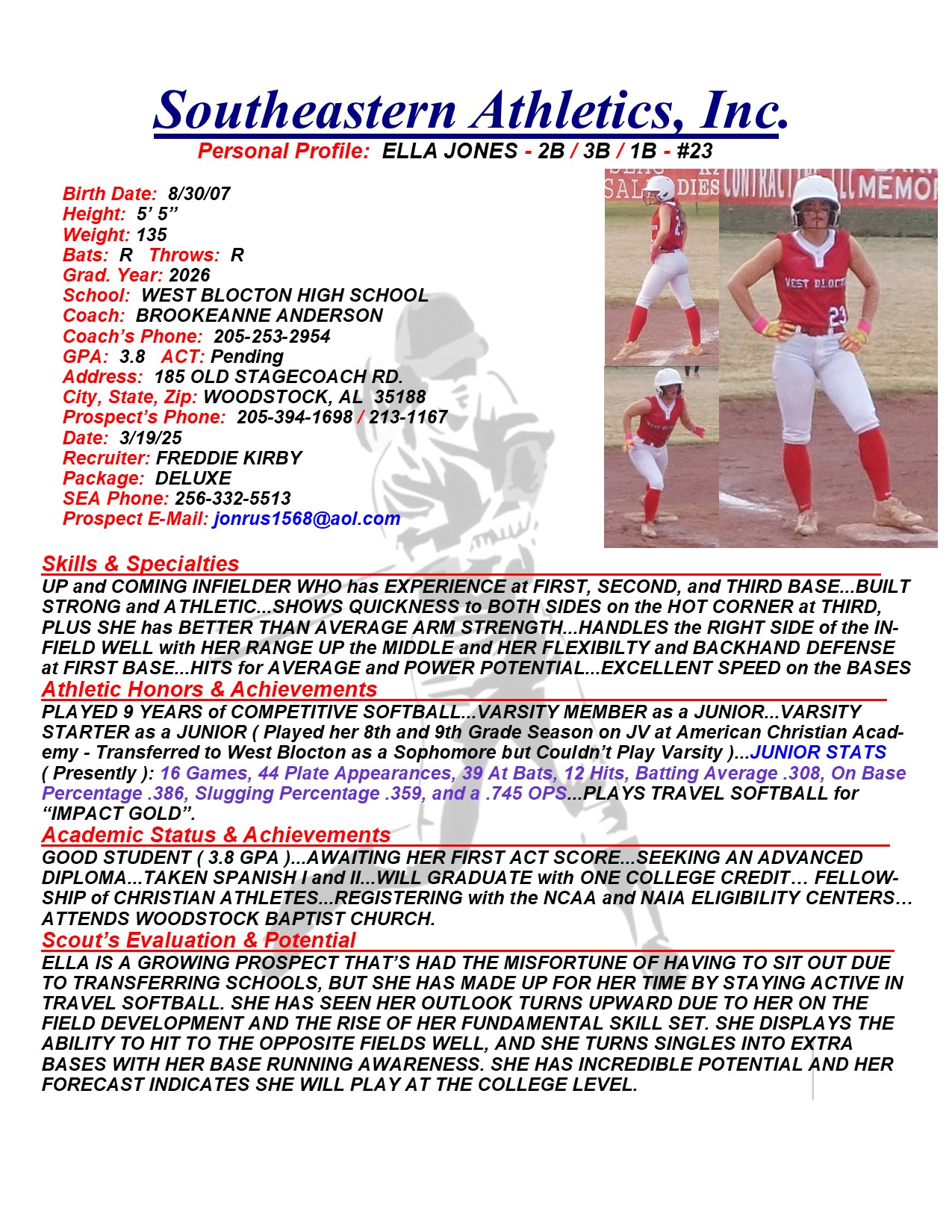 Ella Jones, 2026, 3B / 2B / 1B, West Blocton HS, AL