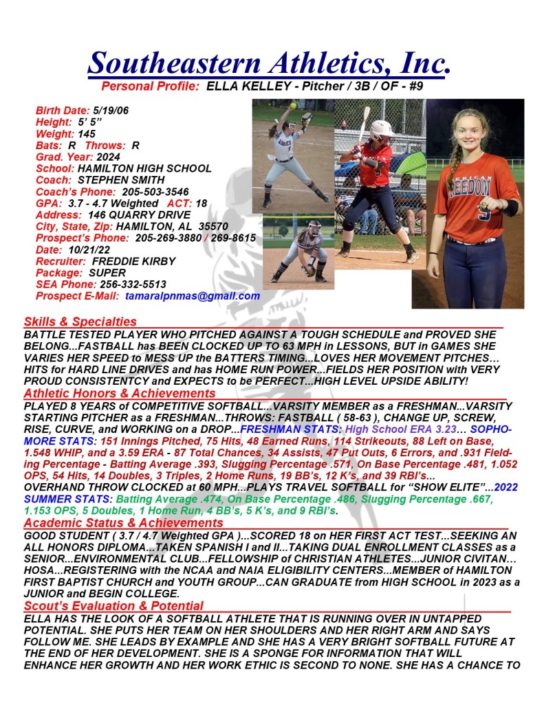 Ella Kelley, 2024, Pitcher / 3B / OF, Hamilton HS, AL