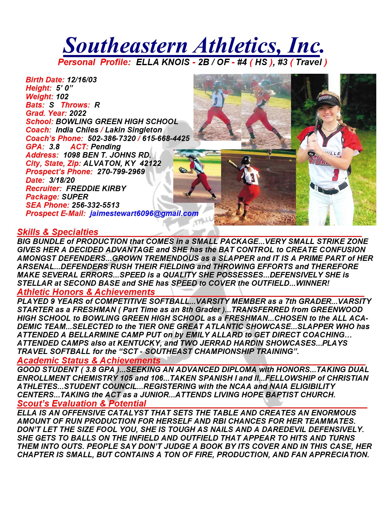 Ella Knois, 2022, 2B / OF, Bowling Green HS, KY
