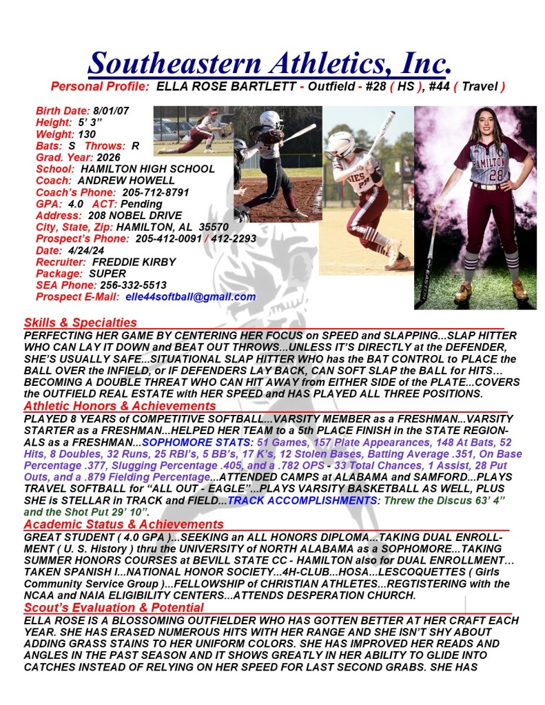 Ella Rose Bartlett, 2025, Outfield, Hamilton HS, AL