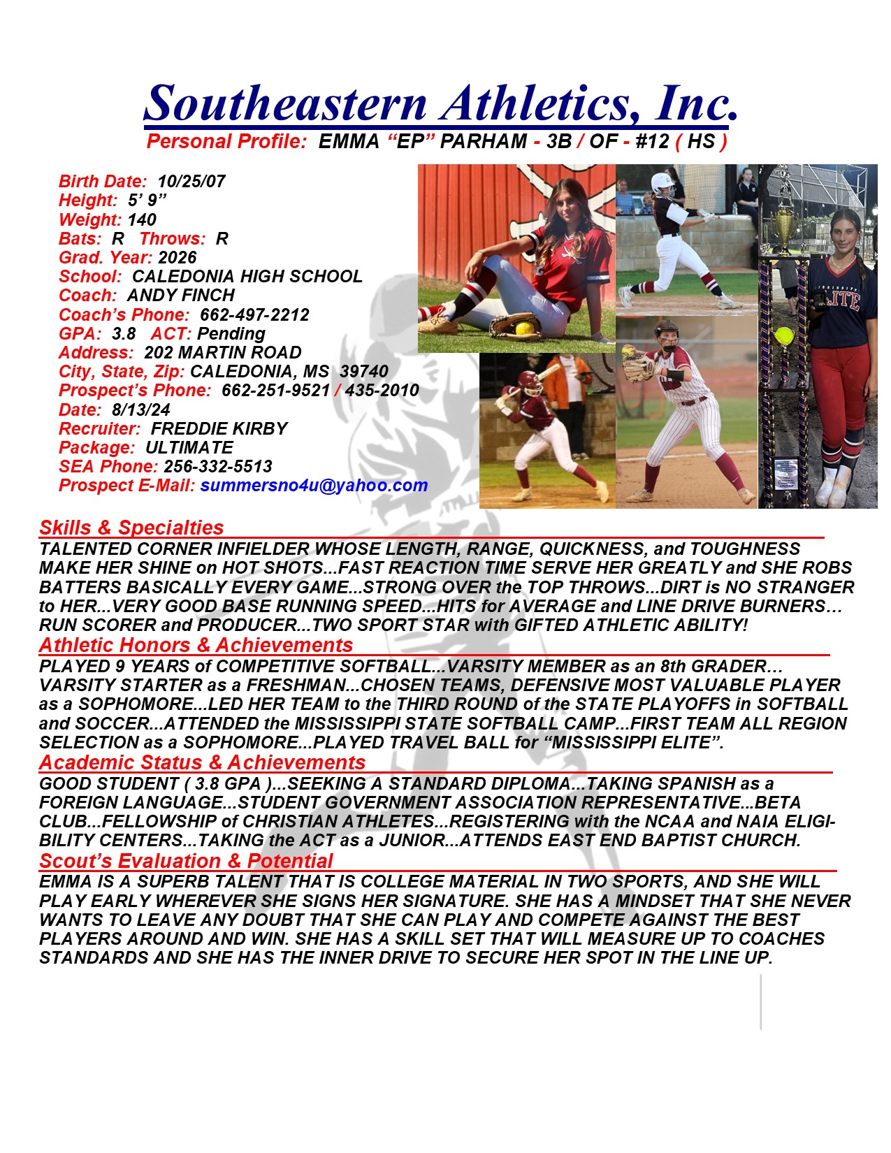Emma “EP” Parham, 2026, 3B / OF, Caledonia HS, MS