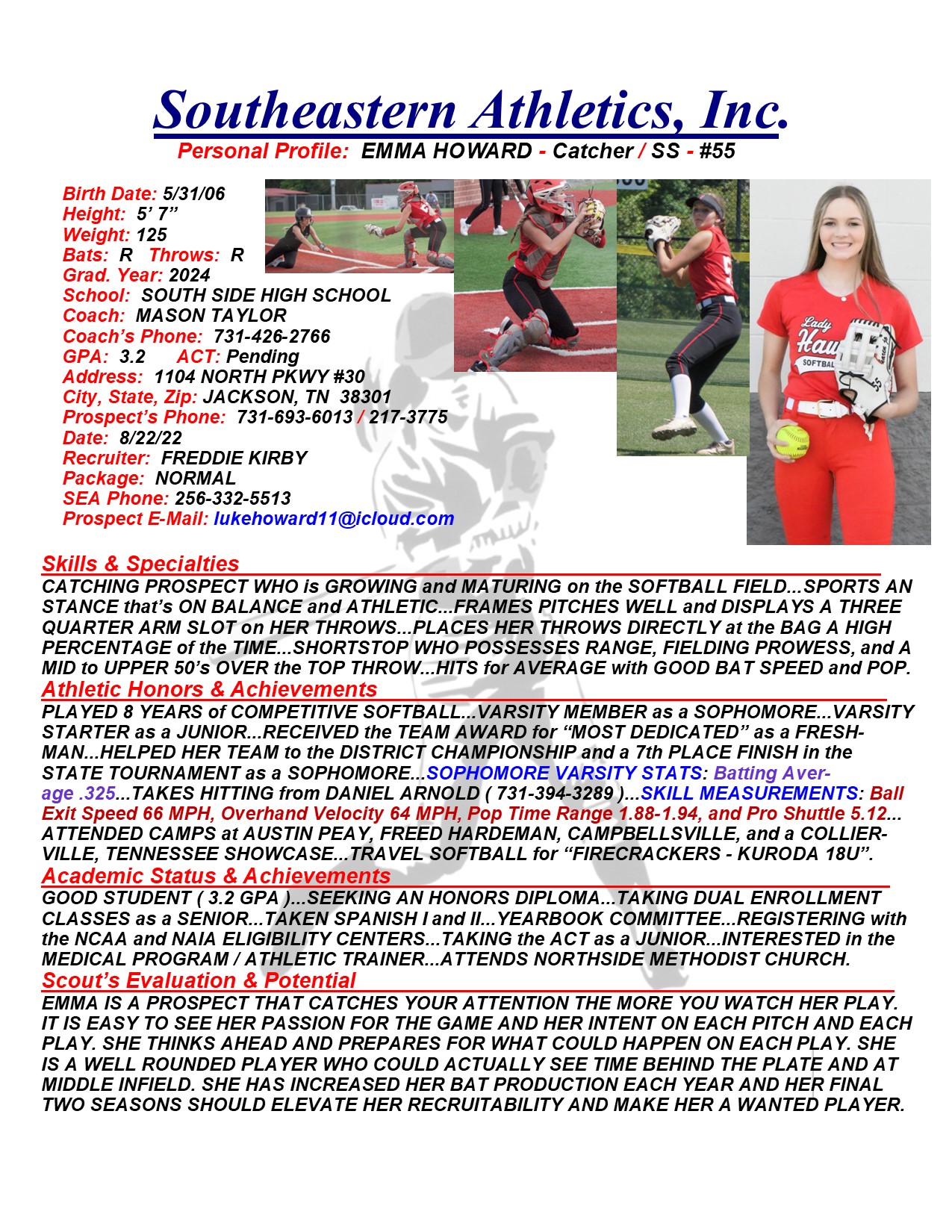 Emma Howard, 2024, Catcher / SS, Jackson South Side HS, TN