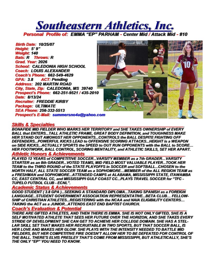 Emma Parham, 2026, Center Mid / Attacking Mid, Caledonia HS, MS