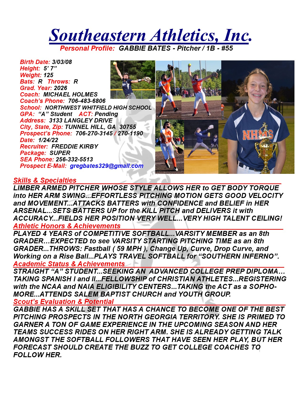 Gabbie Bates, 2026, Pitcher / 1B, Northwest Whitfield HS, GA