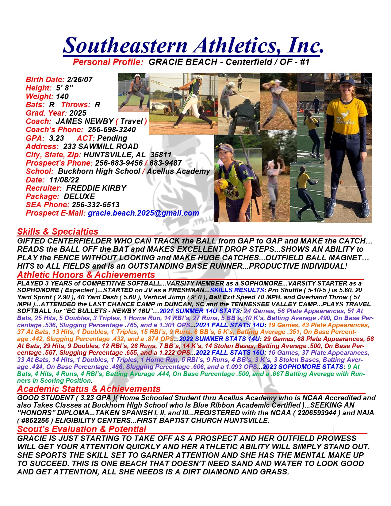 Gracie Beach, 2025, Centerfield / OF, Buckhorn HS, AL
