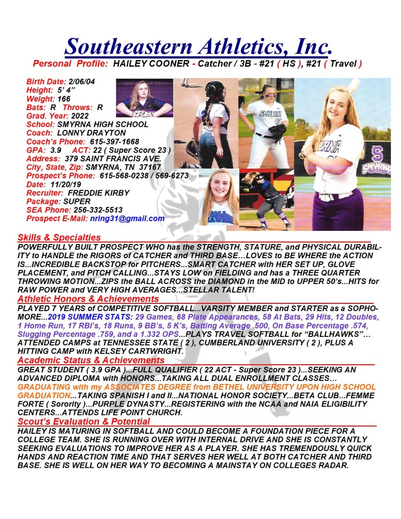 Hailey Cooner, 2022, Catcher / 3B, Smyrna HS, TN