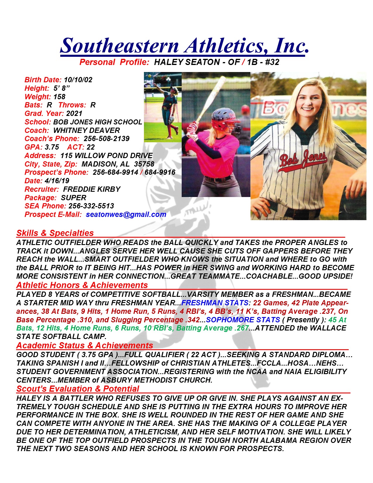 Haley Seaton, 2021, OF / 1B, Bob Jones HS, AL