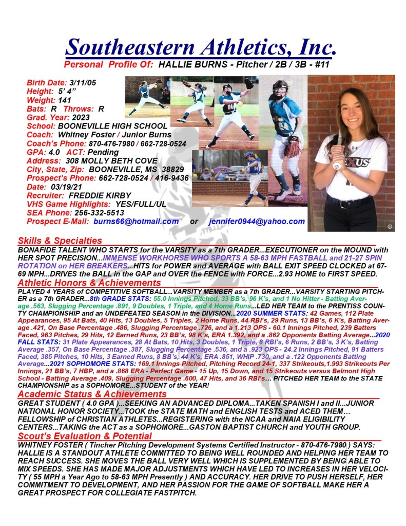 Hallie Burns, 2023, Pitcher / 3B / 2B, Booneville HS, MS