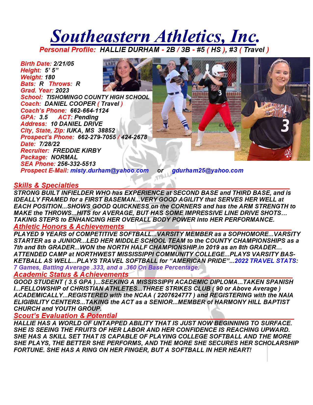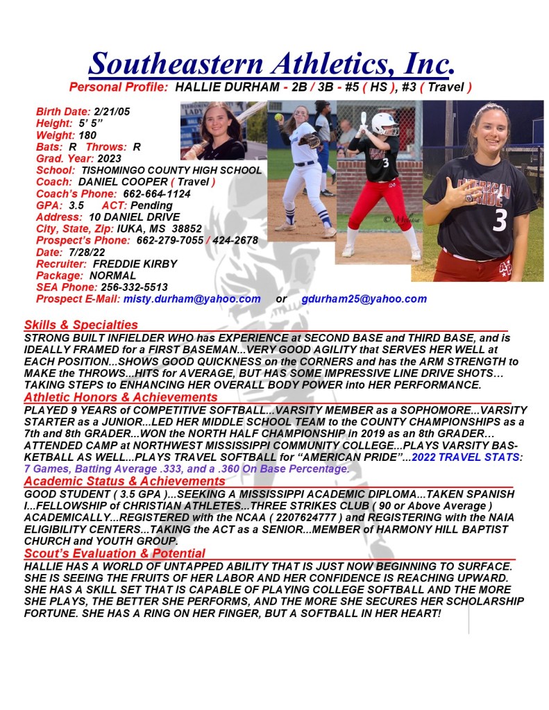 Hallie Durham, 2023, 2B / 3B, Tishomingo County HS, MS