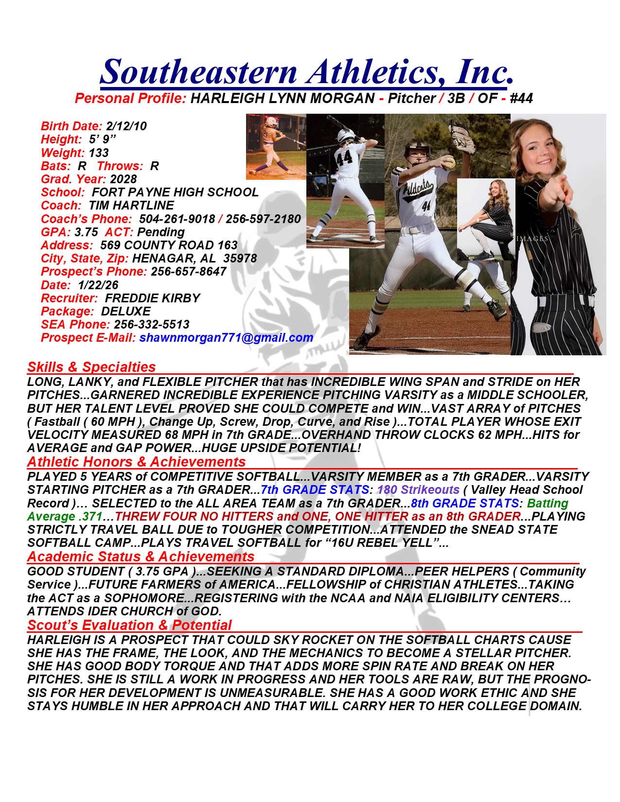 Harleigh Morgan, 2028, Pitcher / 3B / OF, Fort Payne HS, AL