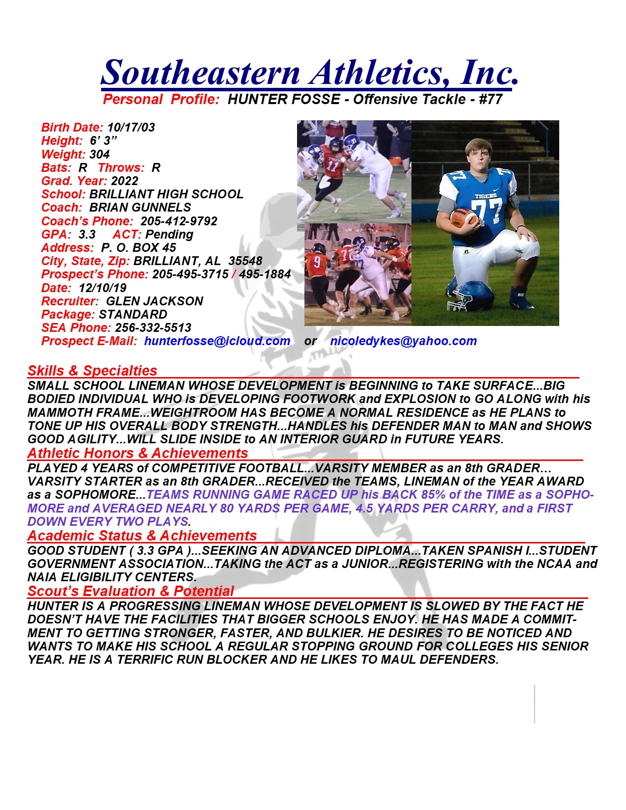 Hunter Fosse, 2022, Offensive Line, Brilliant HS, AL