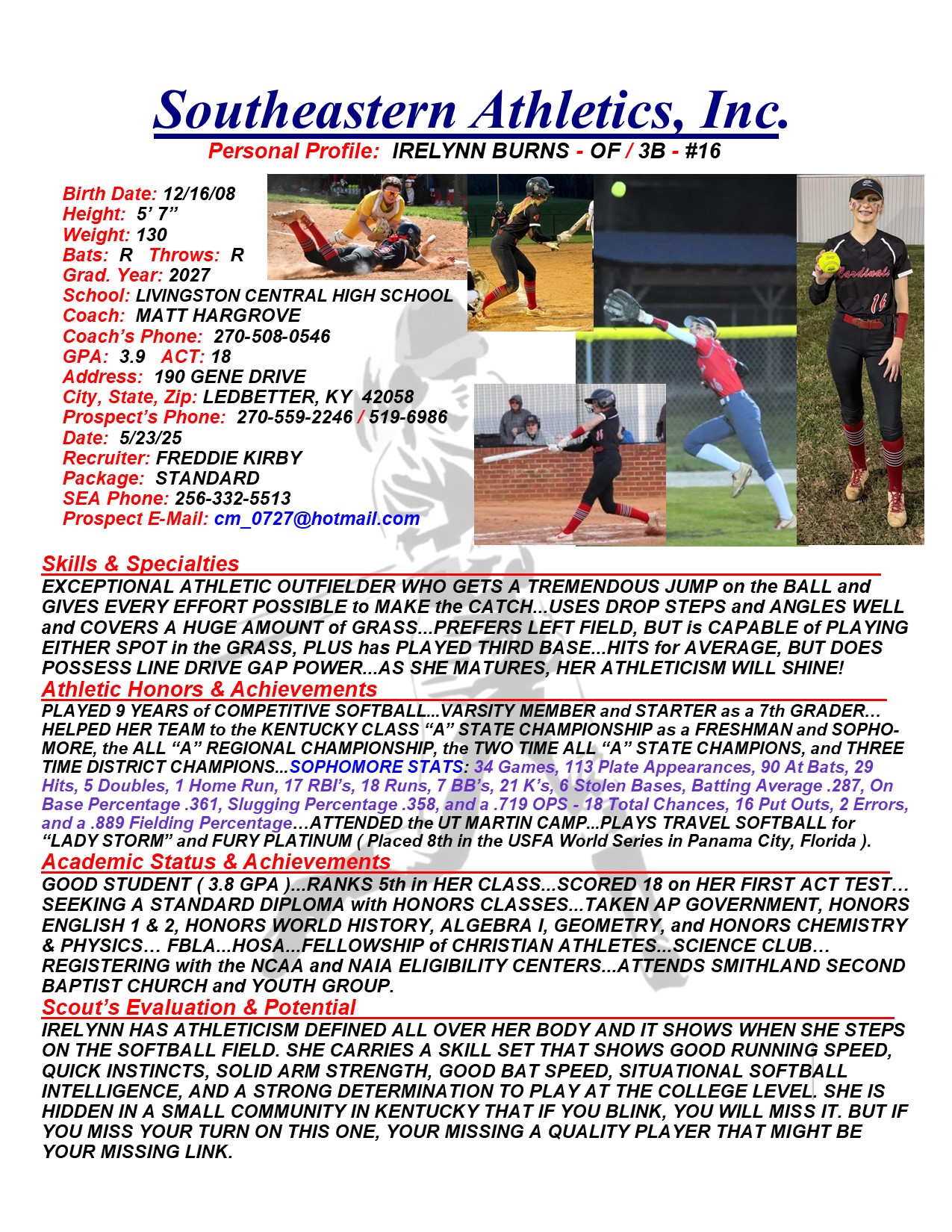 Irelynn Burns, 2027, OF / 3B, Livingston Central HS, KY