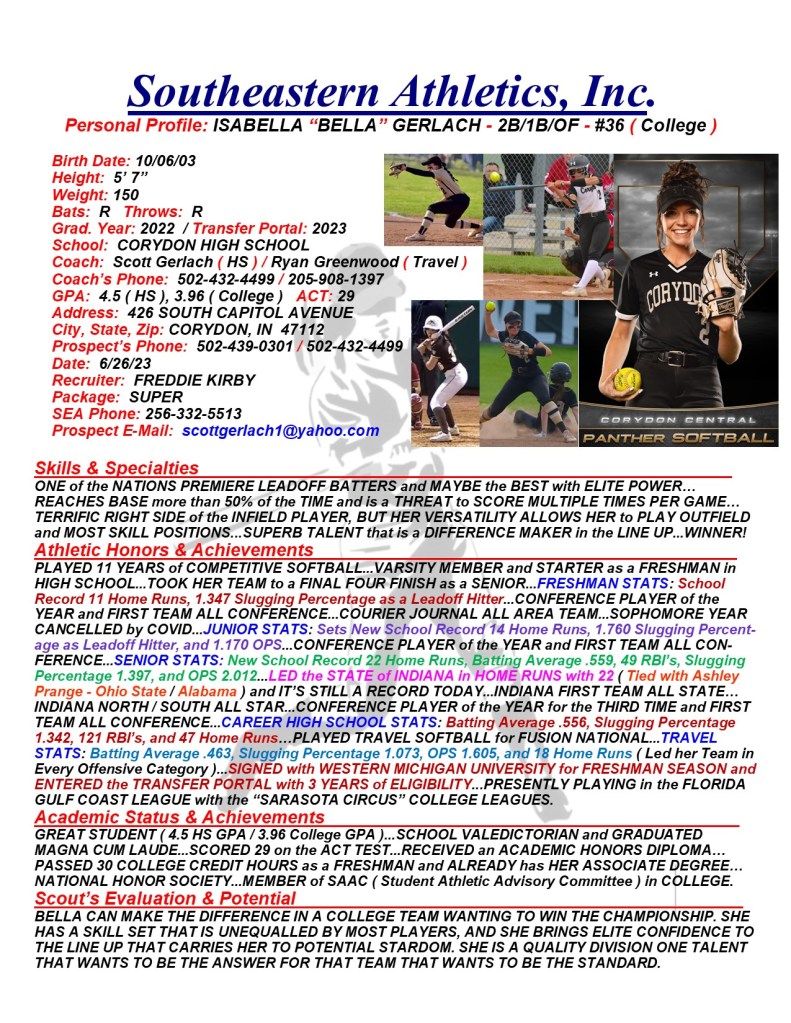 Isabella “Bella” Gerlach, 2023, 2B / 1B / OF, Corydon HS, IN – Western Michigan Transfer